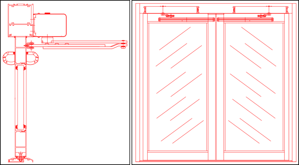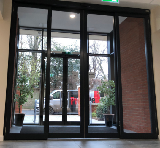 Our installations are carried out by our highly trained and professional technicians, who can also automate the doors as they are installed. Frames and doors are delivered by us to ensure there are no 3rd party hold ups. Typical installations are double glazed, but if required, we can also single glaze using the same profiles with enhanced beading.