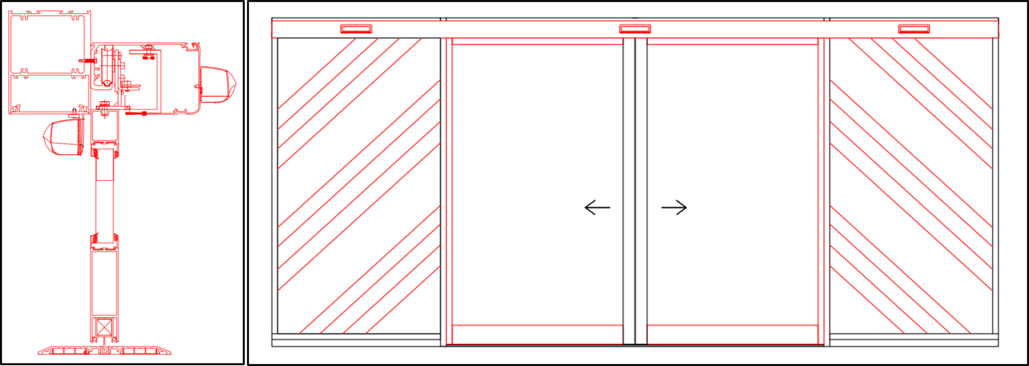 Our installations are carried out by our highly trained and professional employed technicians, who can also automate the doors as they are installed. Frames and doors are delivered by us to ensure there are no 3rd party hold ups. Typical installations are double glazed, but if required we can also single glaze using the same profiles with enhanced beading.
