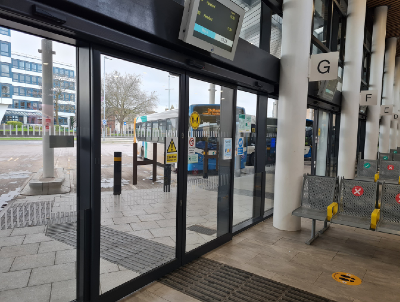 The Saturn circular sliding door is for you when you prefer the look of a revolving door but need to provide access for all with limited space in the entry area.